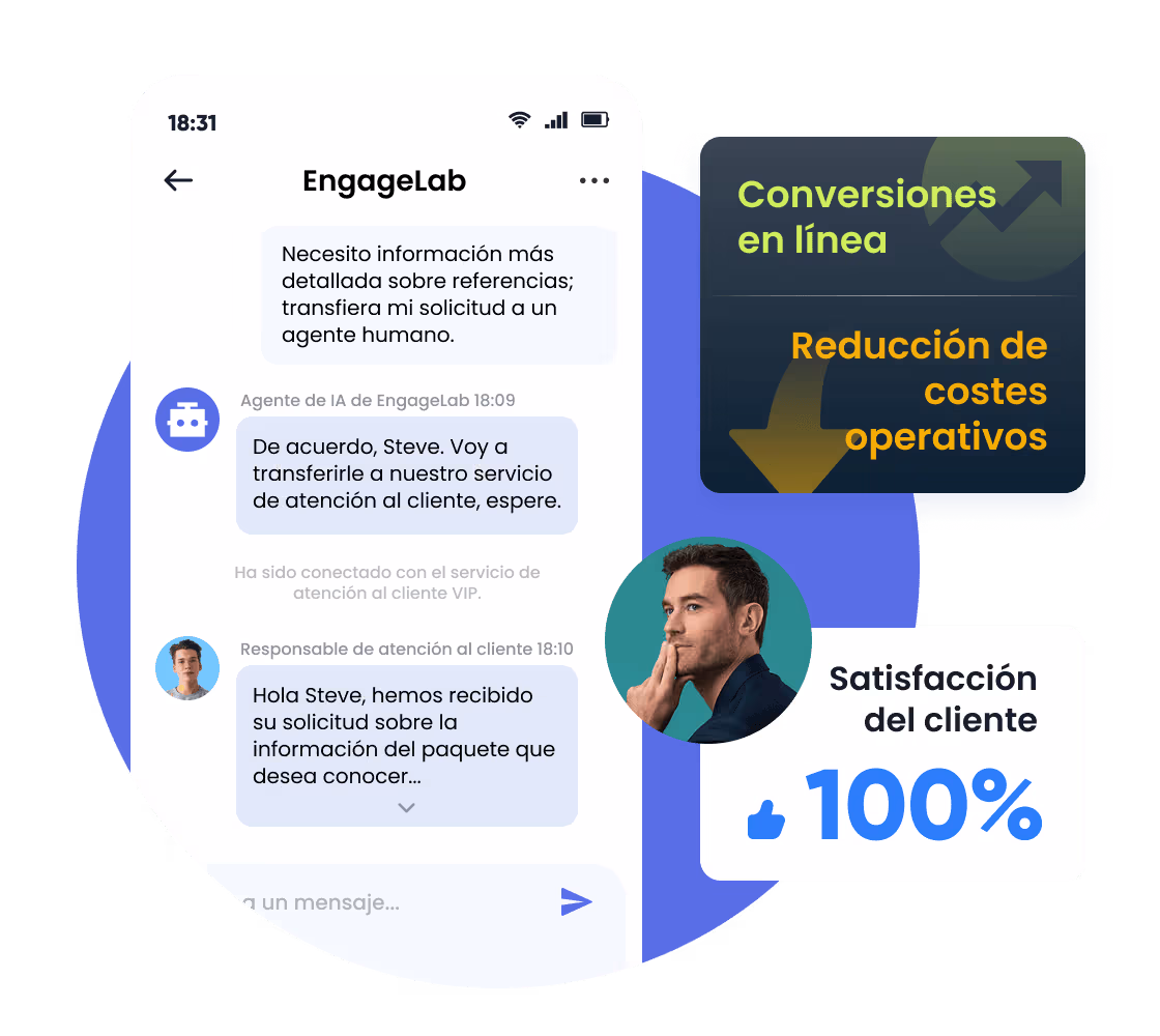 EngageLab unifica cada interacción con el cliente a través de todos los canales. Mediante un perfil completo e información contextual, ofrecemos no solo respuestas, sino también una comprensión profunda y una atención consistente.