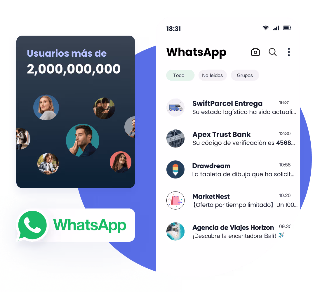Con WhatsApp disponible en más de 180 países y 2.000 millones de usuarios activos, las marcas pueden responder al instante e interactuar en tiempo real, aumentando la satisfacción y la fidelización.