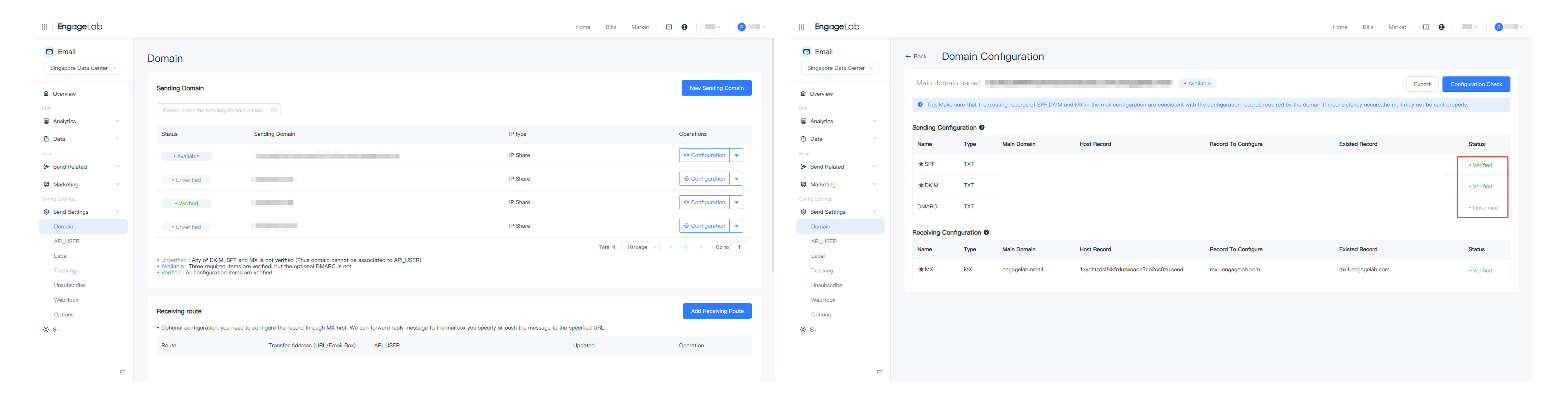 ドメインの設定状況は、ドメイン設定ページで確認できます。
