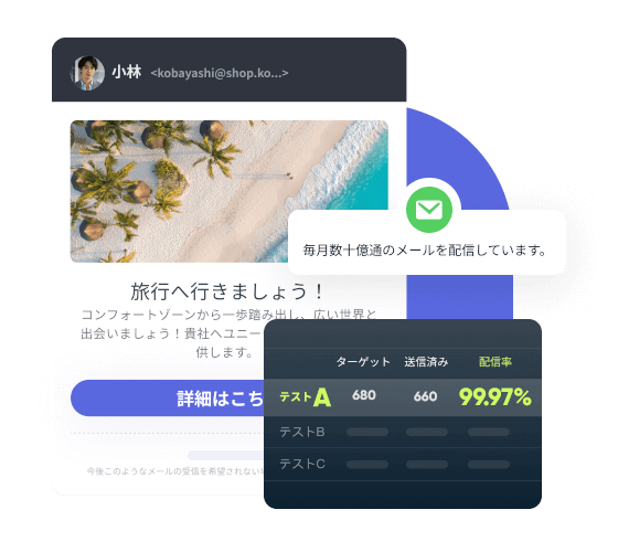 たった数分で当社のメールマーケティングAPIを導入いただけます。EngageLabのメールマーケティングソリューションは、平均3秒の配信時間で世界中の購読者にメールを配信し、詳細なデータ分析レポートを提供します。EngageLabにお手伝いさせてください!