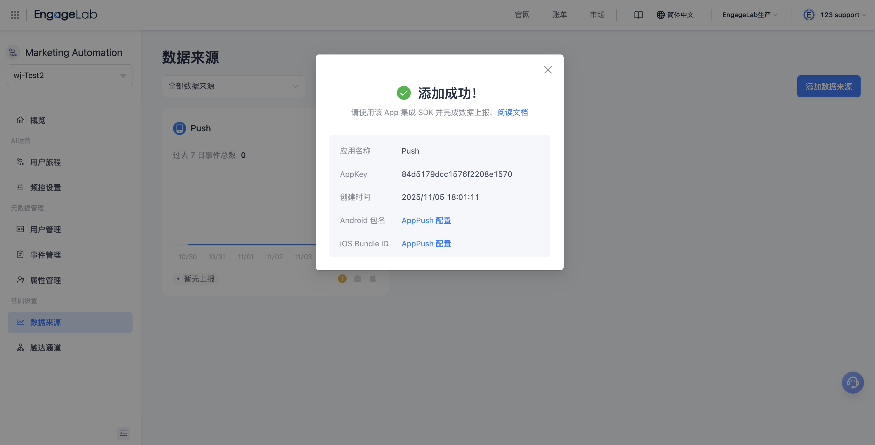 登录 EngageLab 控制台 → 进入 「数据来源」 页面。